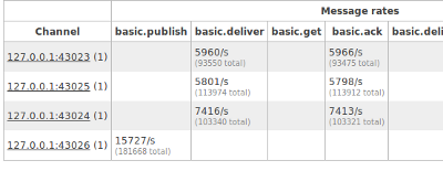 So RabbitMQ Management will allow easier management and better monitoring. How better? Well, as part of the upcoming rabbit release we've added a statistics gathering feature to the broker. This can count messages as they're published, routed, delivered and acked, on a per channel / queue / exchange basis, so we can determine things like which channels are publishing fast or consuming slowly, which queues are being published to from which exchanges, which connections and hosts are busiest, and so on.